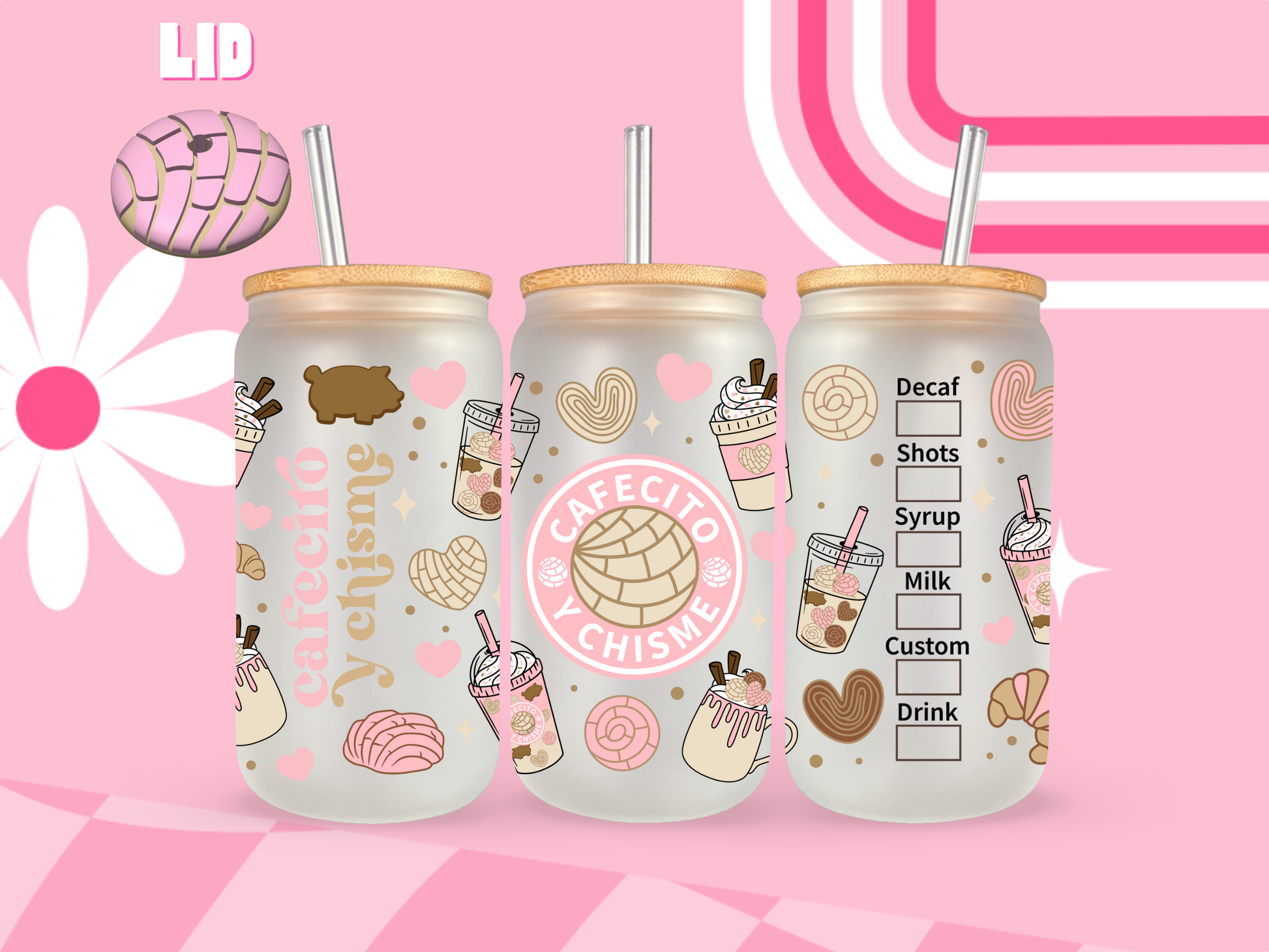 Lt. Pink Cafecito Frosted Glass Can